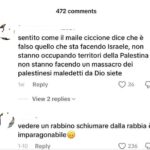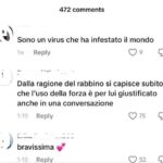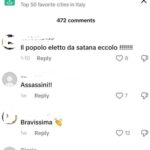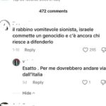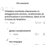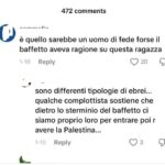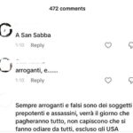 La discussione tra un rabbino ed una sostenitrice dei palestinesi viene commentata in chiave di violento antisemitismo da decine e decine di tiktokers. I post usano la maggior parte dei miti di accusa giudeofobici (razzismo, esclusivismo, tendenza alla violenza, etc.) ed incitano allo sterminio degli ebrei. Frequente l’uso di un greve pseudo umorismo ed il richiamo ad Adolf Hitler (baffino, baffetto, il baffo). Vittime di queste fantasie di morte un rabbino del Nord-Est e generici ebrei.