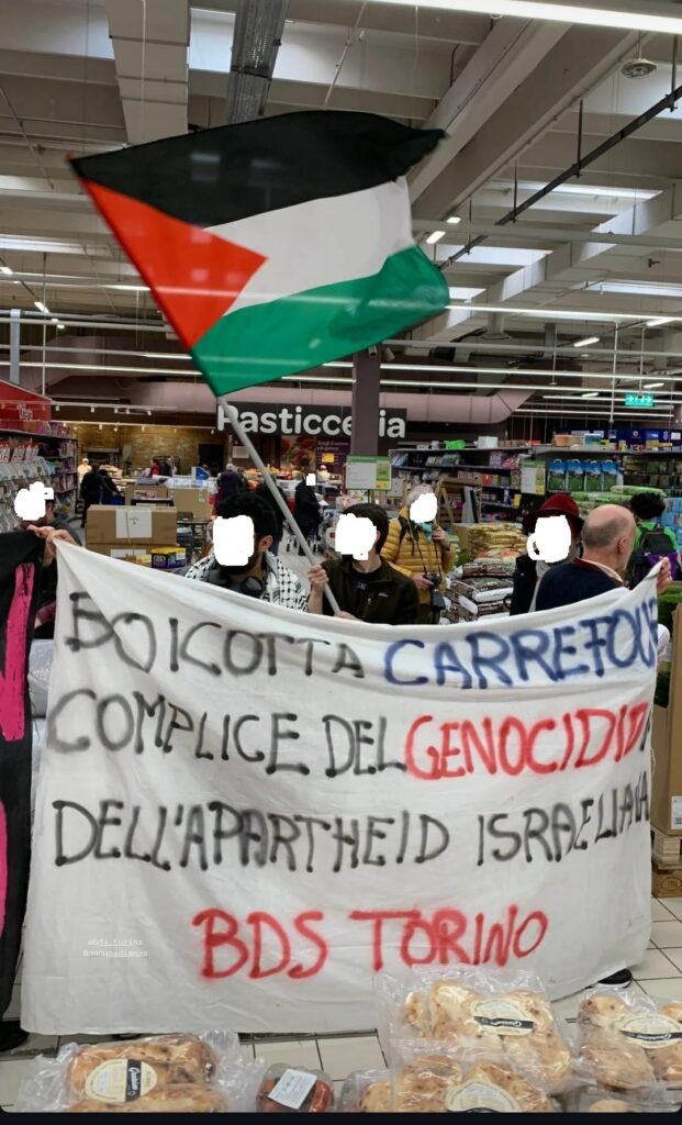 Stampa 9 Marzo 2025 Torino, BDS contro una catena di supermercati Luogo: Torino Fonte: Segnalazione CE «Carrefour ti sporca le mani» Torino, prosegue la campagna di BDS ai danni della catena di supermercati Carrefour che, per i militanti pro pal, parteciperebbe al “genocidio” del popolo palestinese.