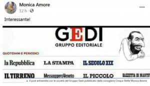 Il post è comparso sulla bacheca Facebook di una consigliera M5S di Torino, Monica Amore, e immediatamente sono scoppiate le polemiche. Lei, a commento della vignetta antisemita, aveva abbinato l’espressione “interessante!”. Ma quando si è resa conto di quel che aveva scatenato ha subito cercato di scusarsi. “Non avevo assolutamente intenzione di pubblicare contenuti di quel genere, non mi sono accorta della vignetta – dice – mi scuso, perché quando l’ho ricevuta ho solo pensato che ci fossero molto sponsor del Gruppo Gedi e mi sembrava interessante”.