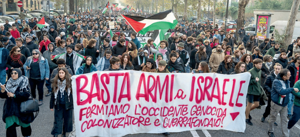 Slogan di apertura del corteo: «Basta armi a Israele: fermiamo l’Occidente genocida, colonizzatore e guerrafondaio». Cartelli di solidarietà alle vittime dei bombardamenti nella Striscia e bandiere della Pace avvolte come un mantello si mescolano alle kefiah. In direzione Porta Palazzo, il corteo si ferma. Dalle casse rimbomba la voce di Mohammad Hannoun, 62 anni, presidente dell’Associazione Palestinesi d’Italia, dallo scorso ottobre nella blacklist degli Stati Uniti con l’accusa di finanziare il terrorismo. Due giorni fa l’uomo ha ricevuto un foglio di via per istigazione all’odio e alla violenza dalla questura di Milano perché una settimana fa aveva invitato a sostenere «i bravi giovani di Amsterdam» che avevano pestato i tifosi israeliani del Maccabi Tel Aviv.