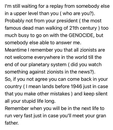 Giovane ebreo italiano che porta la kippah si trova alla stazione di Treviso e prova a prendere un taxi, ma il guidatore , vedendolo, gli chiede: «Sei sionista? Sionisti not on the board», e rifiuta di farlo salire sull’auto. Il giovane scrive allora alla direzione della compagnia di taxi per lamentare l’atteggiamento discriminatorio di cui è stato vittima e riceve una risposta ostile, eccone alcuni stralci: «I remember you that all zionists are not welcome everywhere in the world till the end of our planetary system (did you watch something against zionists in the news?). So, if you no agree you can come back in your country».