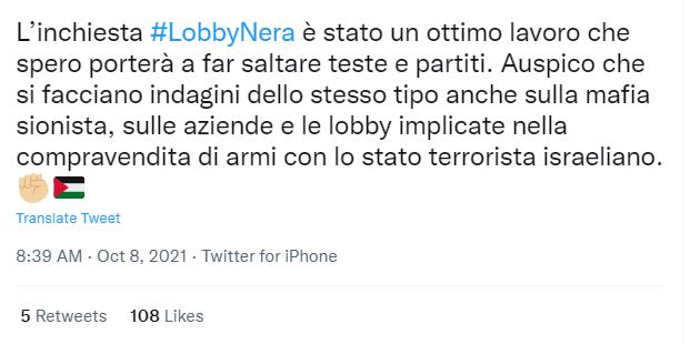 In occasione di una inchiesta giornalistica su settori della destra radicale italiana, l’influencer invita la magistratura ad indagare sulla “mafia sionista”.