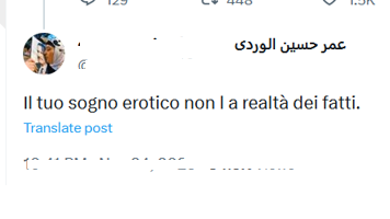 Serie di insulti sulla piattaforma X/Twitter da parte di un account islamista che inneggia ad Hamas, e al suo obiettivo di sterminare il popolo ebraico. L’account indulge anche nei commenti misogini ed irride le donne israeliane vittime dei brutali stupri ad opera dei terroristi di Hamas..