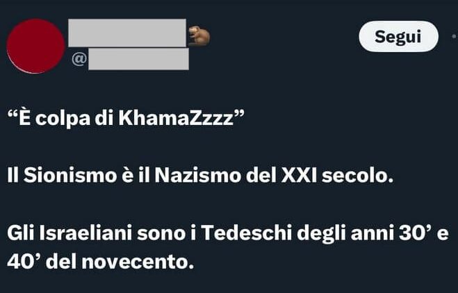 Utente su X: “il sionismo è il nazismo del XXI secolo”