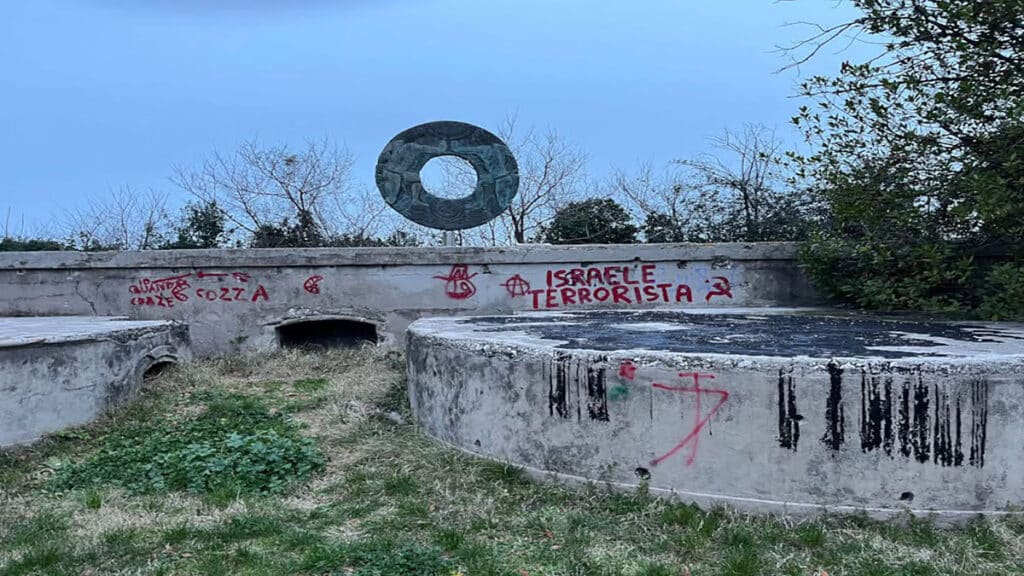 L’antico cimitero ebraico del Monte Cardeto in Ancona è un luogo straordinario, a picco sul mare, con cippi funerari vecchi di secoli che si stagliano bianchi sul verde del prato e il blu del mare. Purtroppo l’area è stata nei giorni scorsi oggetto delle attenzioni di vandali antisemiti che ne hanno imbrattato il muro di recinzione con scritte contro Israele.