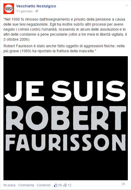 vecchietto_nostalgico_11gennaio15_faurisson Pubblicata il 31 Marzo 2015 alle 495 × 720 in “Vecchietto nostalgico” profilo Facebook filofascista e negazionista
