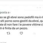 Vari utenti X/Twitter simpatizzanti pro pal postano commenti e minacce – larvate ed esplicite – contro gli ebrei. Una delle narrative più utilizzate consiste nell’invitare gli ebrei a prendere le distanze dal “nazi-sionismo”, in caso contrario incorreranno nelle giuste punizioni (“prendete le distanze dal sionismo altrimenti la pagherete”). Non mancano miti di accusa arcaici, come l’accusa del sangue («sotto alla sinagoga a NY dove sono stati ritrovati corpicini di bambini, sangue…»), oppure complottisti modellati sui Protocolli dei savi di Sion, secondo cui gli ebrei sarebbero i gestori della pornografia.