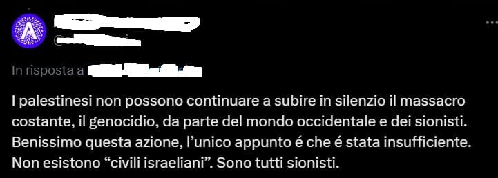 1 Pubblicata il 6 Novembre 2025 alle 721 × 258 in X/Twitter, estremista arabo incita al terrorismo “antisionista”