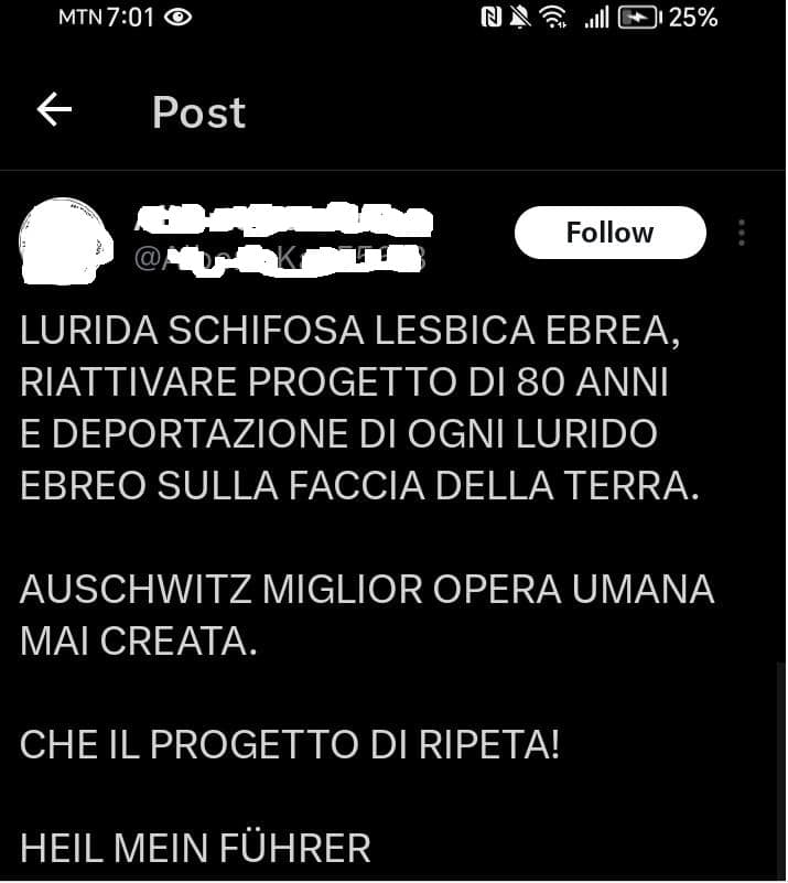 2_2 Pubblicata il 21 Maggio 2025 alle 715 × 801 in X/Twitter, incitazione alla violenza contro gli ebrei