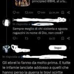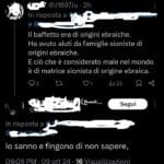 Utenti X/Twitter postano messaggi fortemente antisemiti, le narrative giudeofobiche sono molteplici, si va dall’antigiudaismo che considera i libri sacri ebraici ricettacoli di sozzure ai complottismi contemporanei che vedono in Hitler un “ebreo aschenazita” sino al “sionismo” Male del mondo.