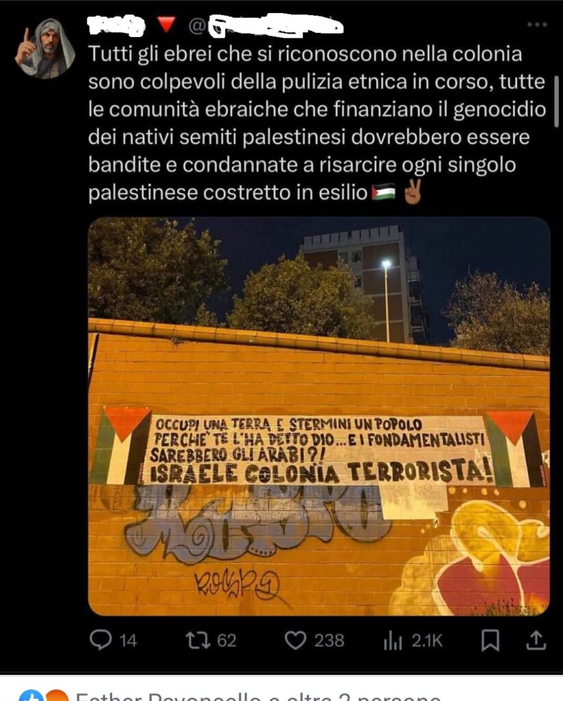 Stampa 20 Febbraio 2025 X/Twitter minaccia antisemita Fonte: Segnalazione CE «Tutti gli ebrei…» Influencer antisemita pubblica sul suo seguito profilo X/Twitter l’ennesimo post con minacce ed ingiurie contro gli ebrei.