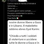 Utente X/Twitter che usa come nickname uno slogan che si richiama ai  massacri antisemiti del 7 ottobre, posta contro gli ebrei usando praticamente tutti gli stilemi dell’archivio antiebraico.