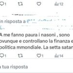 Utente X/Twitter posta commenti antisemiti che impiegano tutte le principali narrative contro gli ebrei. Frequente l’uso di un frasario triviale («Non ho i vostri gusti da pervertito non mi succhiano il ca..o da bambino come a voi malati») e denso di odio.