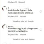 Utente Instagram posta un video che mostra due israeliani che si fanno beffe dei morti palestinesi, seguono decine di commenti volgarmente antisemiti dove gli ebrei vengono tacciati di essere come o peggio dei nazisti, demonizzati (maiali, merde, maledetti da Dio, etc.) . Frequenti le fantasie di morte ispirate alla Shoah.