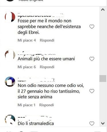 7 Pubblicata il 22 Gennaio 2025 alle 372 × 460 in Instagram, volgarità antisemite e incitazioni alla violenza