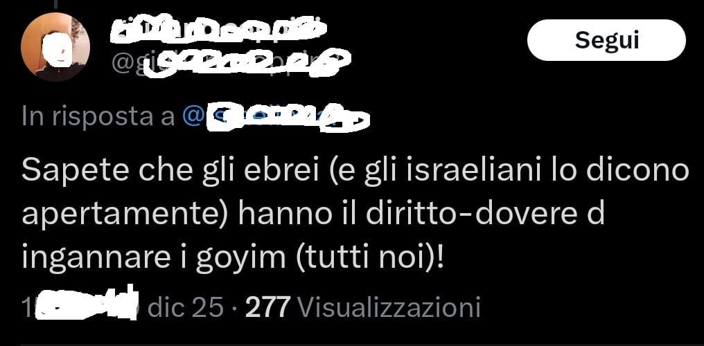 X, utente posta commenti antisemiti