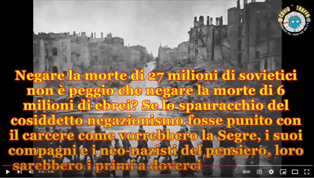 Stampa 28 Gennaio 2023 YouTube, canale antivaccinista insulta Liliana Segre Fonte: Segnalazione “Liliana Segre da vittima a carnefice” Canale YouTube dedicato alla propaganda del complottismo antivaccinista, posta un breve video di impianto cospiratorio colmo di insulti e falsità contro Liliana Segre.