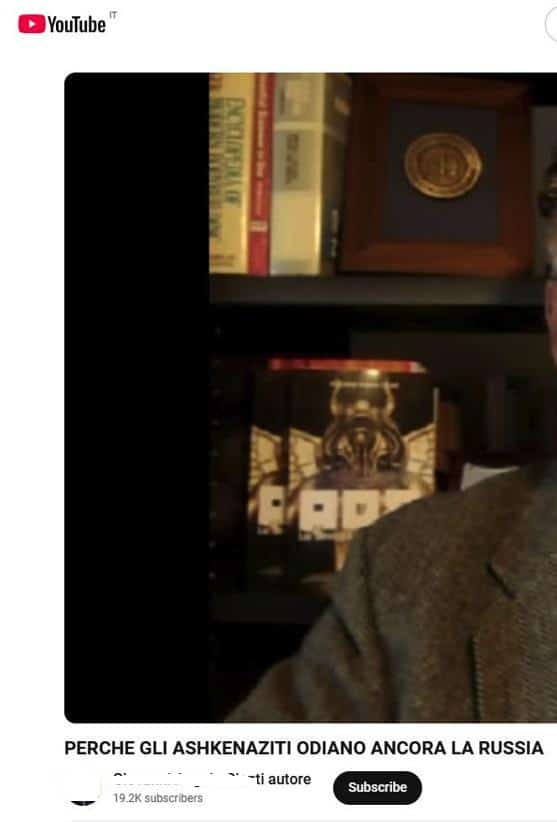 Influencer antisemita che, nel corso degli ultimi anni e su vari canali è diventato propagandista di un antisemitismo modellato sul più trito e grottesco cospirativismo contro gli ebrei, posta sul suo canale YouTube un video dietrologico incentrato sui cosiddetti ashkenaziti: “Perché gli ashkenaziti odiano ancora la Russia”.