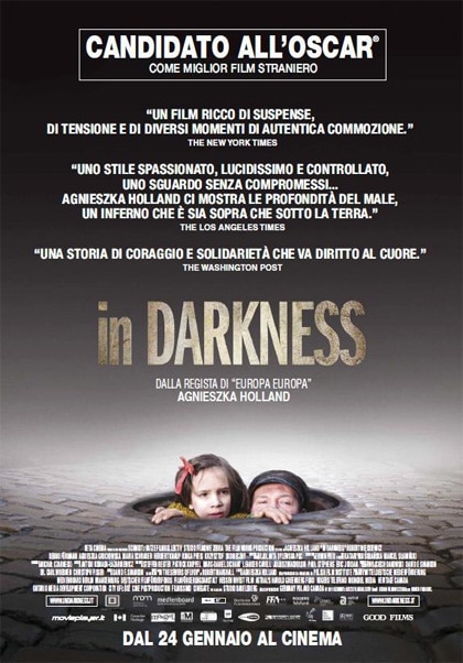 Ambientato quasi interamente in una città sotterranea, In Darkness trova il suo contrappunto nello spazio urbano emergente e in cui emerge Leopold, traghettatore e corriere sospeso tra il mondo di sotto e quello di sopra, dove giorno dopo giorno la macchina di distruzione perfeziona la sua intenzione. Le fognature di Leopoli esemplificano i percorsi di una ricerca di liberazione, i vicoli ciechi dell’autodistruzione, i bivi della perdizione, un labirinto in cui non è facile fiutare tracce di salvezza.