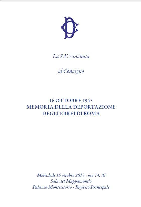 Nel 70° anniversario delle deportazioni naziste dall’Italia, il Parlamento italiano organizza il convegno “Memoria della deportazione degli ebrei di Roma” presso la Sala del Mappamondo a Palazzo Montecitorio.