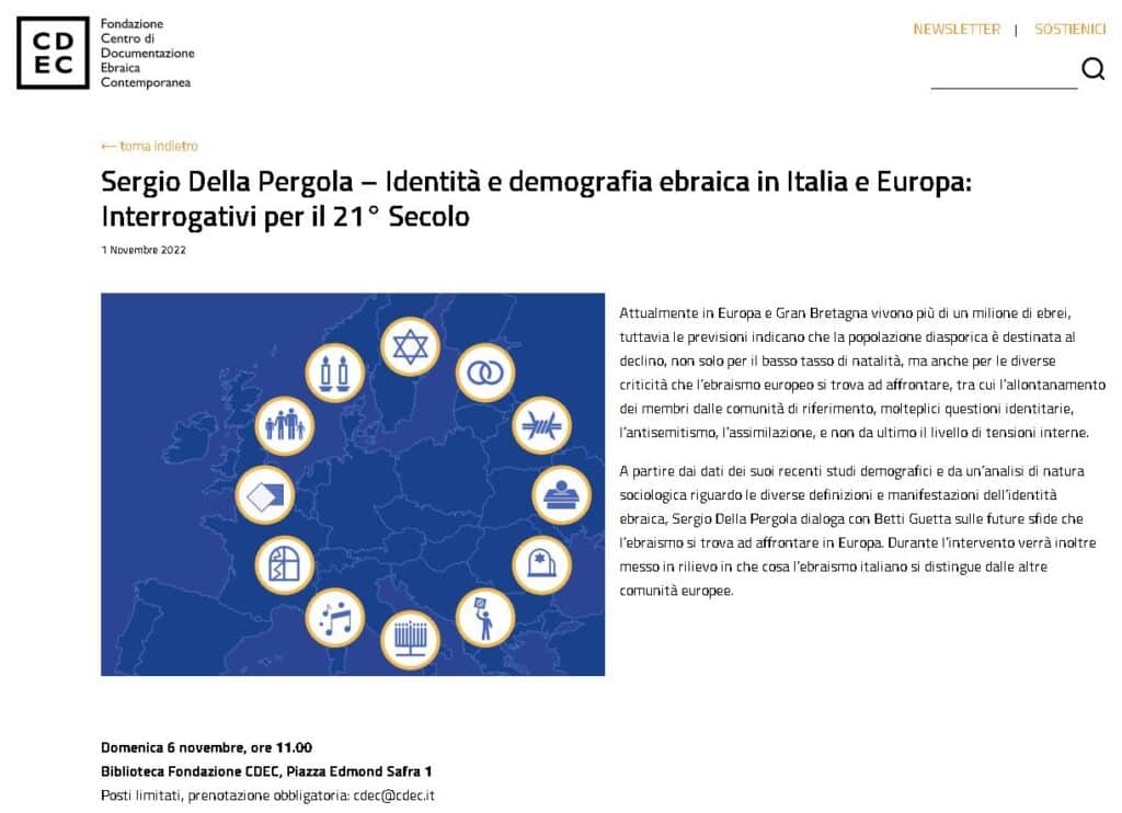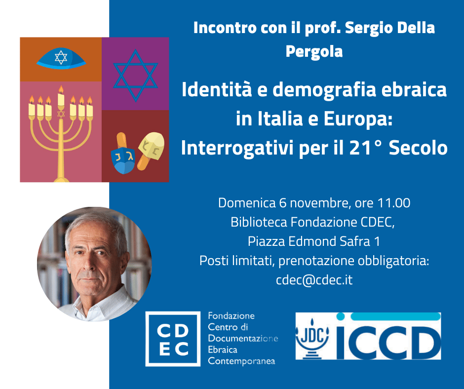 Milano, domenica 6 novembre, ore 11.00, biblioteca Fondazione CDEC, Piazza Edmond Safra 1, conferenza con Sergio Della Pergola e Betti Guetta