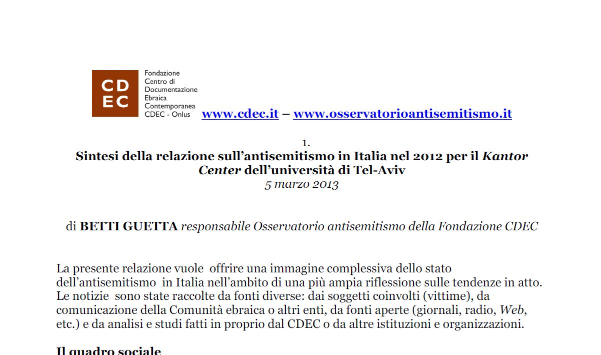 Studi dell’Osservatorio antisemitismo