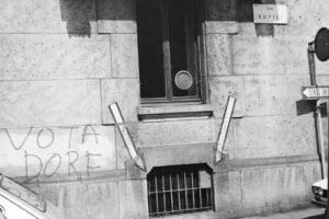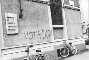 Periodo campagna elettorale. La scritta è comparsa in via San Damanio angolo Via Mozart,