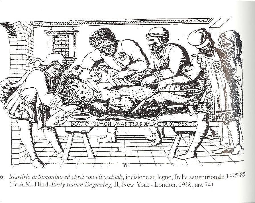 Stampa Incisione su legno, Italia settentrionale 1425-1458, martirio di Simonino Anno: 1475-85 Paese: Italia Fonte: TOAFF A. (2008), Pasque di sangue : ebrei d'Europa e omicidi rituali, Il Mulino, Bologna