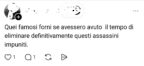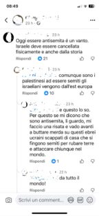“Assassini! Il sionismo è il cancro dell’umanità e lo stato sionista merita di essere cancellato dalla faccia della Terra” “Siamo stati anestetizzati dalla Shoah” “Baffino tornaaaa!!! Non hai finito il lavoro” “Mostri criminali maledetti nei secoli” “Maledetti in eterno”