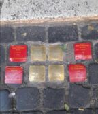 «Every Child Matters» Roma, Trastevere, piazza San Cosimato, ignoti pongono delle pietre di inciampo rosse in chiave pro pal a fianco di quelle che ricordano gli ebrei deportati e uccisi nel campo di sterminio di Auschwitz.