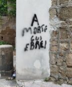 “+ negri – ebrei” Sul muro del cimitero comunale di Viareggio nella sezione ebraica è stata tracciata la seguente scritta antisemita: + negri – ebrei