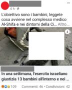 Una nota pagina palestinese diffonde la notizia che l’obiettivo dell’esercito israeliano è quello di giustiziare i bambini.