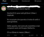 «quando si tratta di soldi ci sono gli Ebrei» Simpatizzante di estrema destra, commentando alcuni fatti riguardanti la famiglia Elkann (magnati proprietari del gruppo automobilistico Stellantis) fa commenti antisemiti.