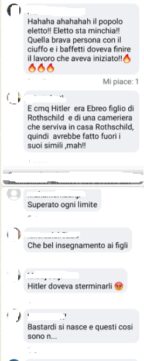 «Quella brava persona col ciuffo e i baffetti doveva finire il lavoro che aveva iniziato !!» Utenti Instagram scrivono invettive contro gli ebrei, narrativa più usata quella secondo la quale Hitler avrebbe dovuto «sterminare» gli ebrei.