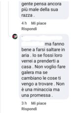 «Viva Hamas» Utente Facebook fa apologia di Hamas («Viva Hamas») e del terrorismo palestinese, anche di quello suicida («fanno bene a farsi saltare in aria») e minaccia una persona («ti vengo a trovare»).