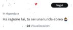 «lurida ebrea» X/Twitter donna ebrea viene insultata con l’epiteto: «lurida ebrea».