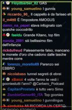 Heil Hitler Commenti inviati in due chat private con su scritto: “Heil Hitler” in una, ed “ebrei di merda” in un’altra.