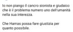 «io non piango il cancro sionista giudaico» Giovane neonazista (“rossobruno”) veneto sull’onda dei massacri di Hamas contro gli ebrei di Israele, posta un violento commento antisemita.