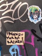 «Parenzo mer…a kazara» Roma, zona Trastevere, affisso adesivo con un insulto contro il giornalista David Parenzo: «Parenzo mer…a kazara». In ambito antisemita il termine “kazaro” ha significato di ebreo complottista e crudele.
