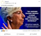 “Sion” Gruppo Facebook (circa 52mila followers) che simpatizza per una deputata del M5S, pubblica un post con il volto di Christine Lagarde (presidente del Fondo Monetario Internazionale) messo di profilo e con la parola “Sion” scritta sul naso.