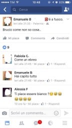 «Brucio come un ebreo» Il giovane Emanuele scrive sul suo profilo Facebook il commento «Brucio come non so cosa» a cui l’amica Fabiola risponde «Come un ebreo».