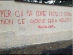 A Roma in via della Balduina incrocio piazza Madonna del Cenacolo è stata tracciata con vernice rossa la seguente scritta: “Per chi sa com’è finita la storia, non c’è giorno della memoria Palestina libera”