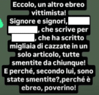 “I manifesti nazisti non hanno mai sbagliato. Naso a forma di 6 e orecchie grandi, ringraziamo i nostri antenati che ci permettono di riconoscerli nella vita quotidiana” Un altro utente pubblica la sua foto accompagnata da affermazioni antisemite: “Ecco un … Leggi tutto